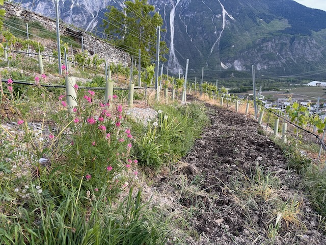 La parcelle de Durize abrite plus de 60 espèces de plantes et fait partie du réseau « Vignes à haute biodiversité » du canton du Valais. On y trouve des arbres fruitiers (abricotier, prunier, pêcher des vignes) et des arbustes comme le baguenaudier et les prunelliers attirant des papillons pour se reproduire. L’étalement des floraisons offre du nectar aux butineurs durant toute la saison.