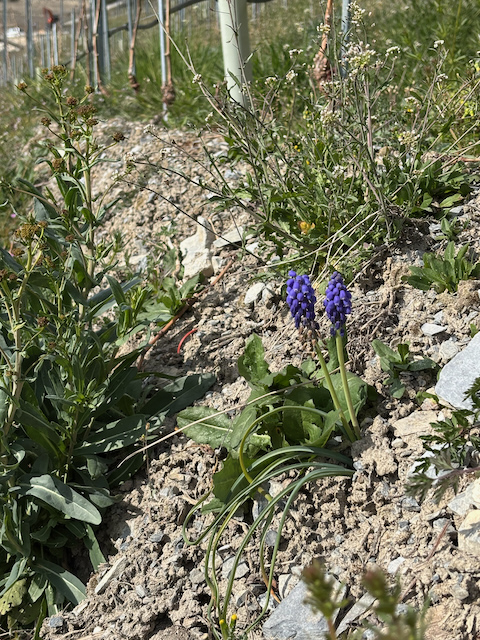 La parcelle de Durize est totalement enherbée et seul l’espace sous les ceps est désherbé mécaniquement pour lutter contre la concurrence pour l’azote et l’eau. C’est sur cette espace désherbé que les oiseaux viennent chercher graines et insectes. Du compost biologique a été apporté pour favoriser la vie du sol et la croissance des plants.
